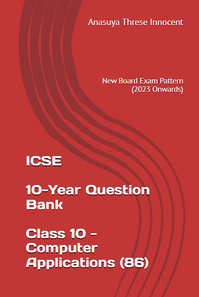 The ICSE Class 10 Computer Applications (86) 10-year question bank is carefully designed as per the new pattern followed by the 2023 board exams onwards. It includes 10 model papers that are based on past papers but help the students to practice as per the new pattern. It can also be used by teachers to train their students. Answers for the model papers in this book are discussed on the YouTube channel https://www.youtube.com/@BiniWorldInnovations